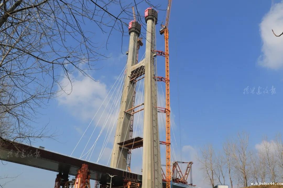鳊鱼洲长江大桥5号墩主塔封顶完成后,将进入主桥钢梁架设阶段,预计2021年6月完成钢梁合龙。
